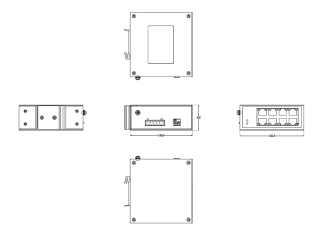 迷你型非管理型千兆工业交换机,8个千兆电口,工作温度-40~85°C,导轨式工业级,IP40,DC12-48V供电,尺寸103×100×41mm